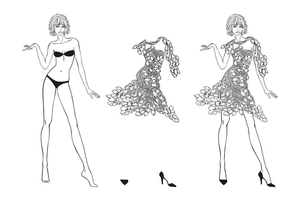 Coloring Page Paper Doll And Flower Fantasies Clothes Stock